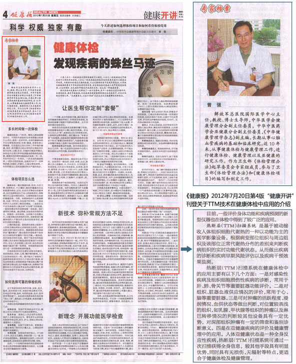 2012年7月20日第4版《健康報》“健康開講” 刊登關于TTM技術在健康體檢中應用的介紹